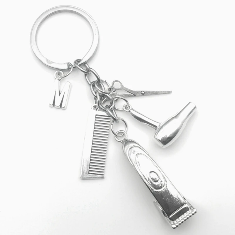 New Personality Hair Dryer Combs Scissors Pendant Keychain Hairdressing